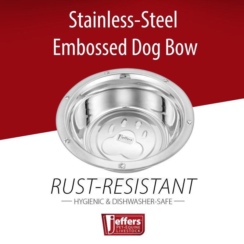 Jeffers Stainless - Steel Embossed Dog Bowl | Wide Lip | 5Quart | 77260E | Easy Grip | Non - Slip & Dishwasher Safe | Best for Pets Like Dogs, Cats & Small Animal