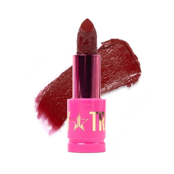 The Jeffree Star Cosmetics Shiny Trap Lipstick Unicorn Blood is an absolute eye-catcher with intense shine and irresistible pigmentation. This deep cranberry red shade makes your lips stand out with a bold, edgy look, perfect for everyday glam or a striking evening statement.