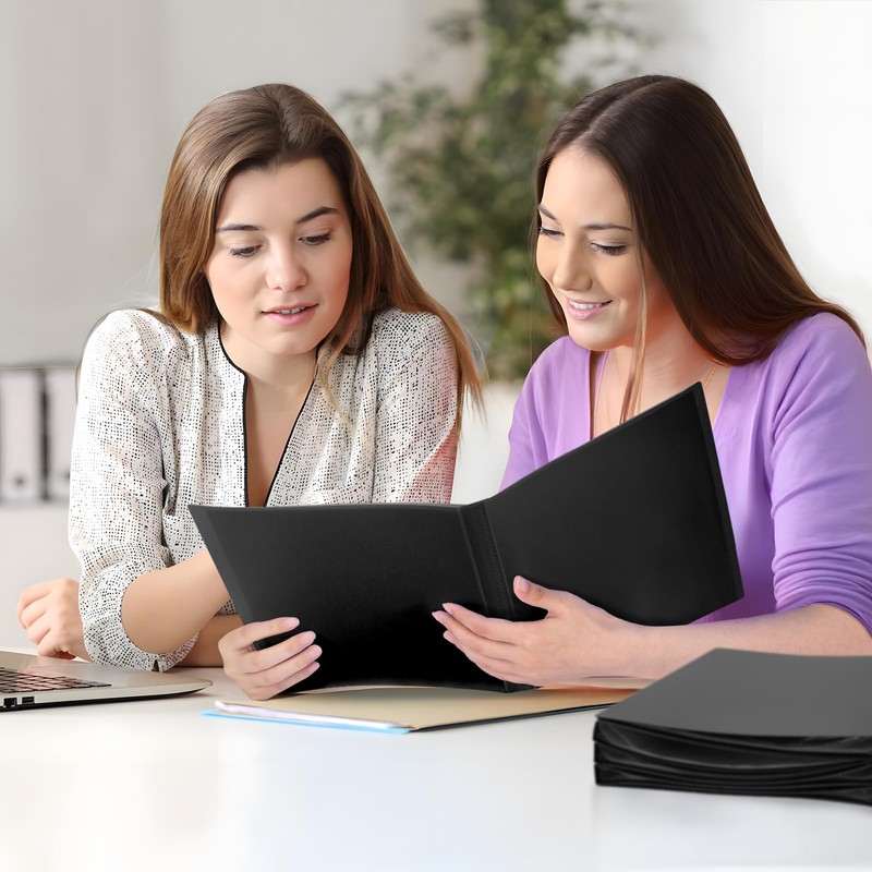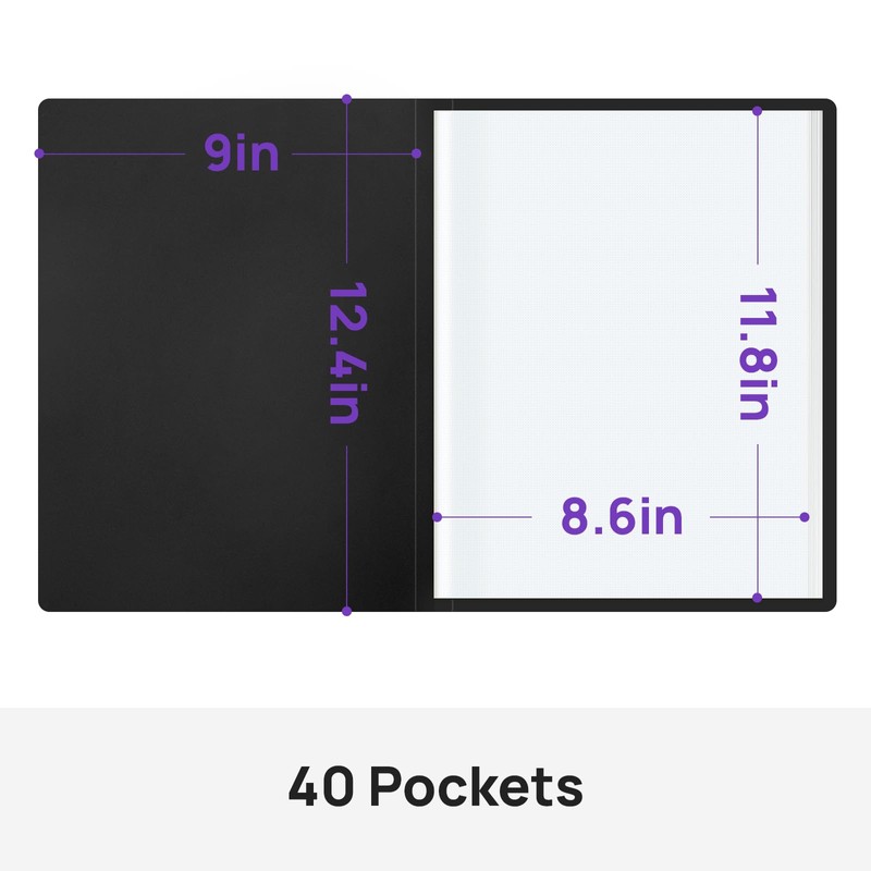 This versatile black folder (12.4×9 inches) is perfect for everyday use, fitting easily into backpacks to keep documents secure and organized. It includes 40 high-definition transparent PP plastic inner pages for instant viewing without removal, featuring reinforced layers to resist tearing, moisture, and wrinkles. The durable, scratch/water/dust-proof cover ensures long-lasting protection, while the sturdy binding keeps pages firmly in place. Ideal for schoolwork, meetings, travel tickets, resumes, manuals, and more, it’s a must-have for office, study, and daily life!