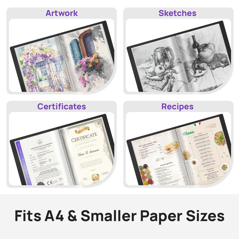 • 【Wide Application】Whether it's school assignments, conference materials, resumes, travel tickets, or menus, manuals, knitting patterns, it can easily store them, meeting various needs in office work, study, and daily life.