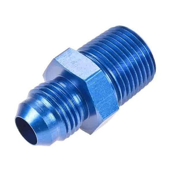 JEGS Straight Flare Fitting | Blue Anodized | 3/8 “ NPT Male To -6 AN Male Flare | 1 Per Package | Aluminum