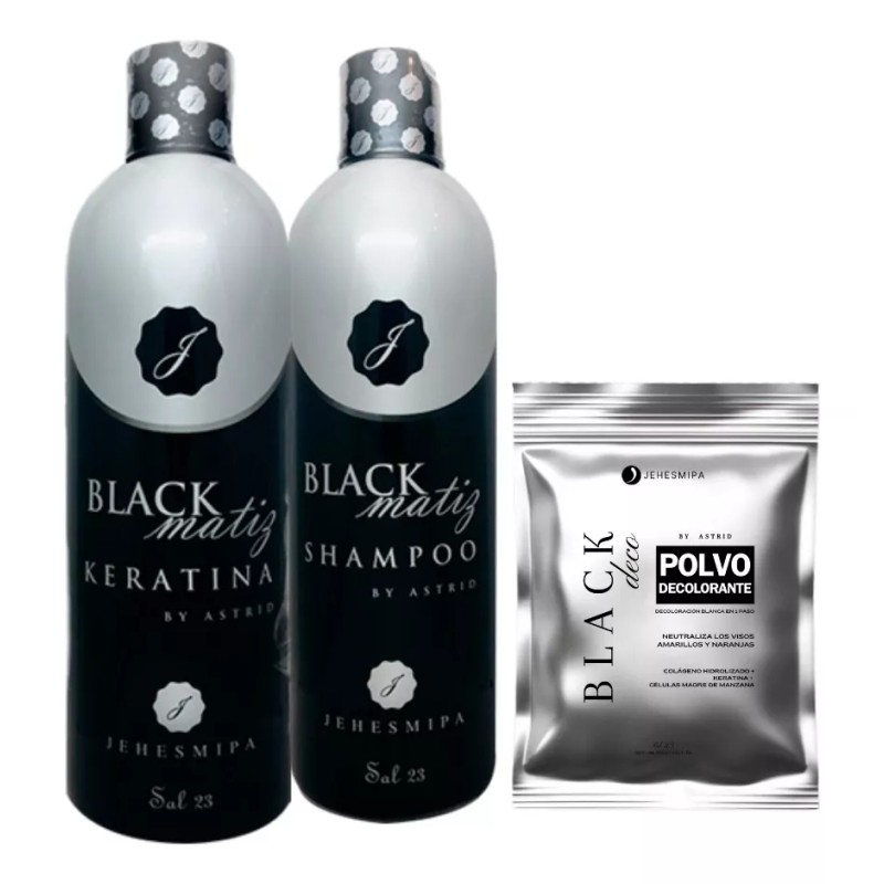 FORMA DE USO: Black Matiz Shampoo: Se aplica cada 3 tercer dia en SECO de 20 a 45 minutos, si deseas en húmedo lo puedes hacer. Es apto para canas y mantener colores platinados. Black Matiz Keratina: Se aplica sobre cabello decolorado en etapa de 7 a 10, antes de aplicarlo debes hacer una prueba de mechón para saber el tiempo de pose. Por ejemplo si en la prueba de mechón el tiempo fue de 30 min aplicas en todo el cabello por 30 min el color es variante dependiendo la pigmentación de cada clienta se aplica 1 vez cada 3 semanas.