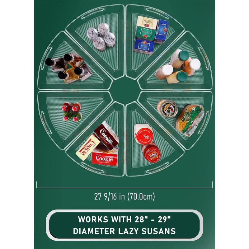 JEISSLIA Lazy Susan Cabinet Organizer Bins for 26"/ 28"/ 32" Diameter Corner Lazy Susan, Plastic Cabinet Storage Bin, 1/8 Wedge-Food Safe, BPA Free, with Non-Slip Pads (for 28" Lazy Susan, 8 Pack)