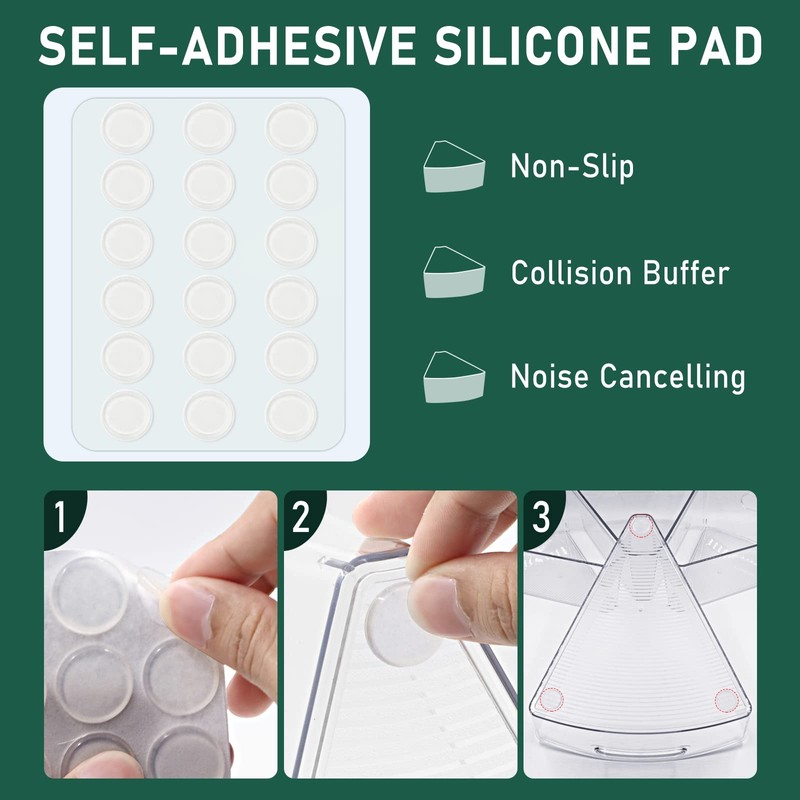 - Free Bonus: Come with some non-slip pads. Paste in the bottom corner of the organizer bin; Prevent them from sliding when lazy susan turned. You can easily attach or remove them.