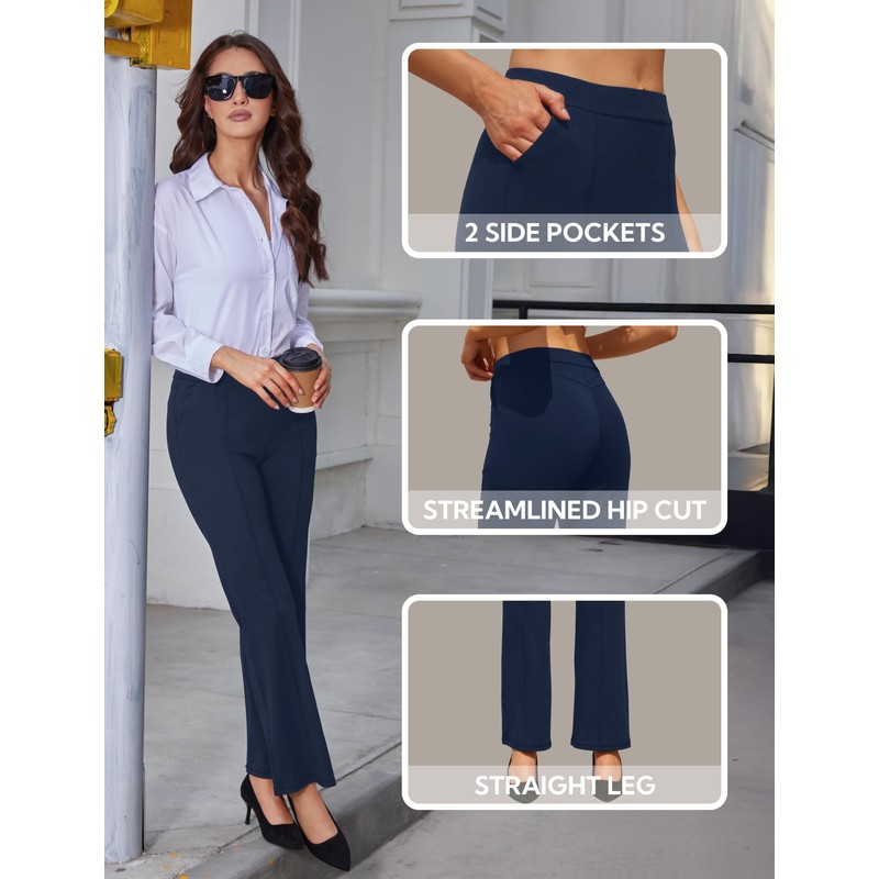 JEKAOYI Womens High Waist Dress Work Pants Stretchy Straight Leg Casual Pants Business Office Trousers Navy Blue