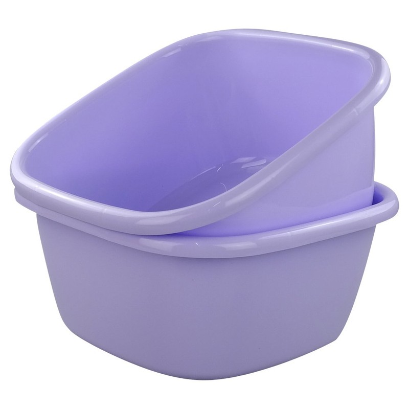 Jekiyo 16 Qt Purple Wash Basin, 2-Pack Plastic Square Dish Tub