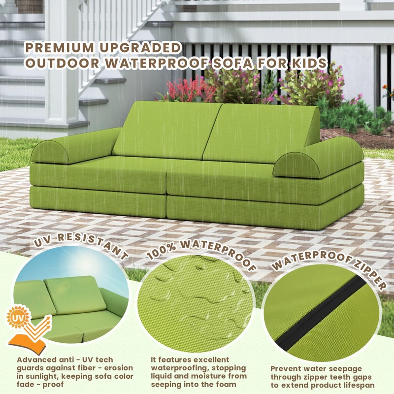 jela Kids Couch, Waterproof Kids Modular Sofa for Outdoor & Indoor, UV Resistant Child Sectional Sofa, Foam Play Couch Playhouse Play Set for Children Adults(Grass Green)