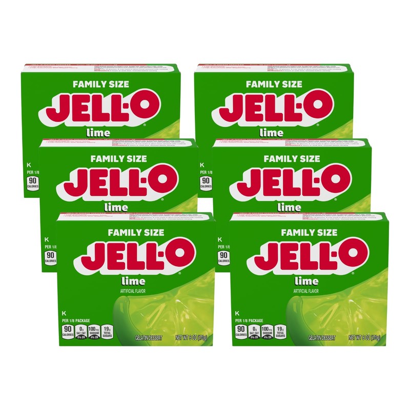 Jell-O Lime Gelatin Dessert Mix, Family Size, 6 oz Box (Pack of 6)