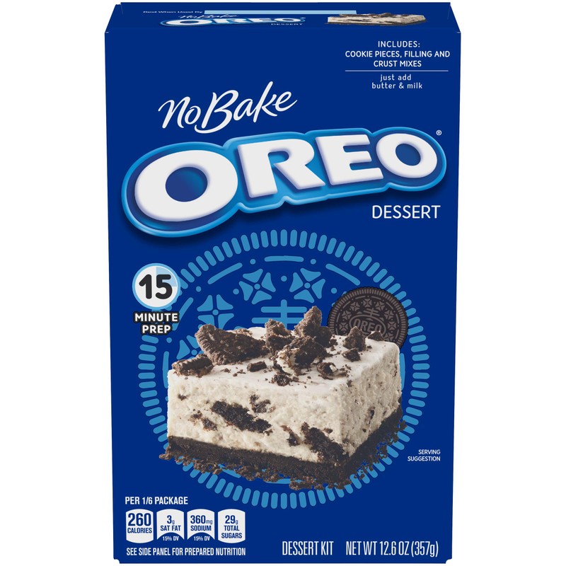 - Jell-O No Bake Oreo Dessert Mix makes a yummy cookies and cream dessert in 15 minutes without baking