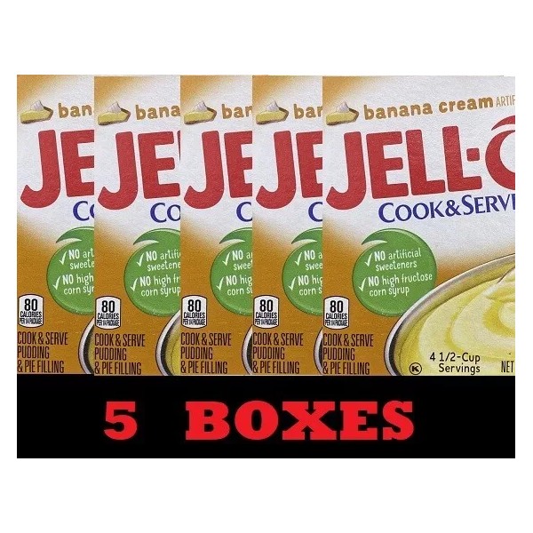 - Five 3 oz boxes of Jell-O Cook and Serve Banana Cream Pudding