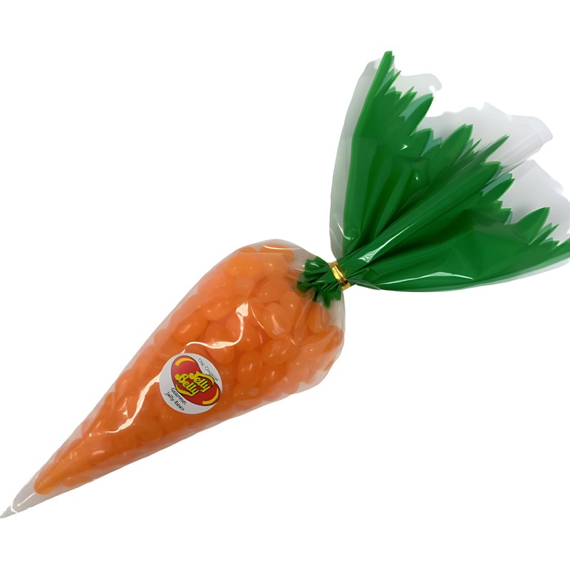 Jelly Belly Easter Carrot Bag. Orange-color Sunkist Tangerine jelly beans in a bag shaped like a carrot. Made with real tangerine juice. Perfect Easter Party candy! 4.25 oz bag. All Jelly Belly jelly beans are OU Kosher. Gluten free, peanut free, dairy free, fat free and vegetarian friendly. The Easter Bunny's favorite! Jelly Belly Sunkist Tangerine beans feature the oil from tangerine zest - they're bursting with vibrant citrus flavor. The beans are packed up in a carrot-shaped bag for perfect presentation this Spring and Easter season.