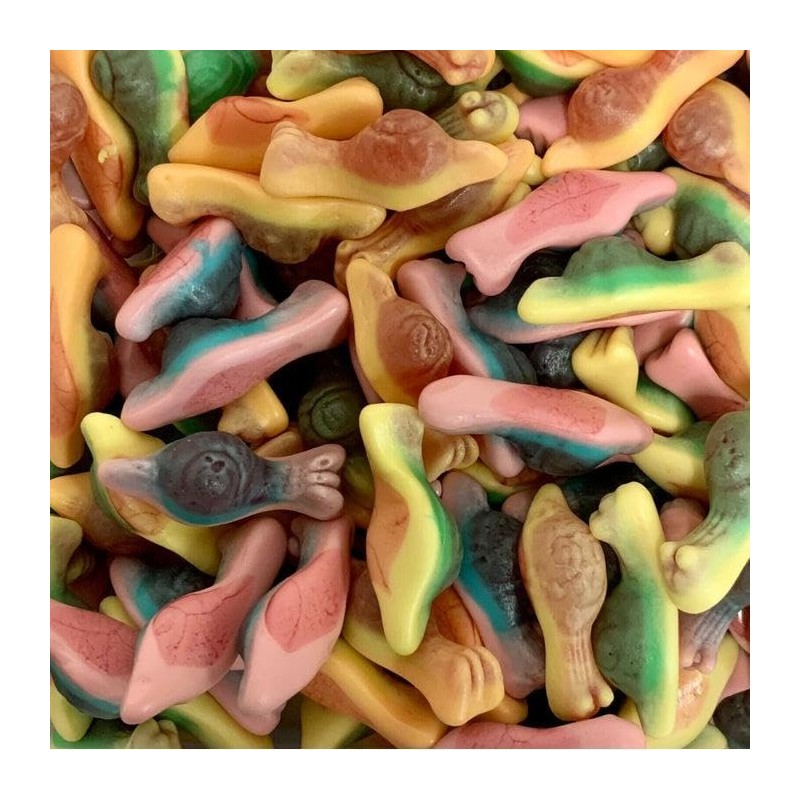 Jelly Filled Snail sweets are a delicious fruit flavour jelly sweets filled with a soft jelly centre, fun for children and adults alike!