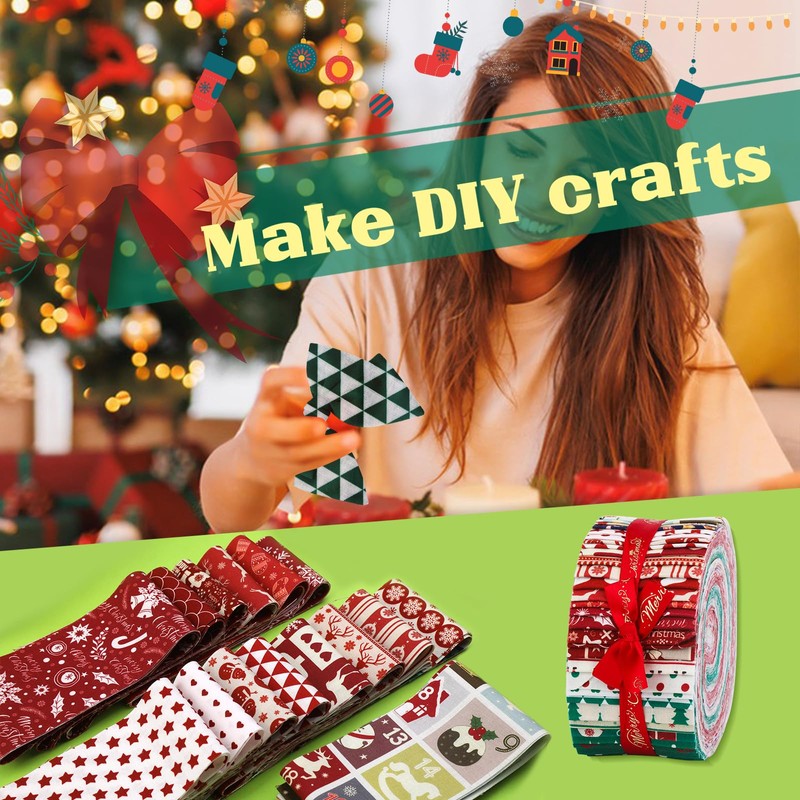 - Beautiful Patterns: The 32 Pcs Christmas themed jelly roll fabric contains many classic Christmas symbols, such as Santa Claus, snowman, Christmas tree, bells, etc., creating a strong festive feeling