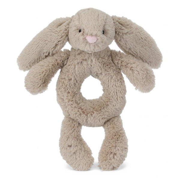 Jellycat Bashful Beige Bunny Stuffed Animal Ring Rattle, 7 inches - Bunnies & Rabbits Plush Rattle for Babies - Baby Gift