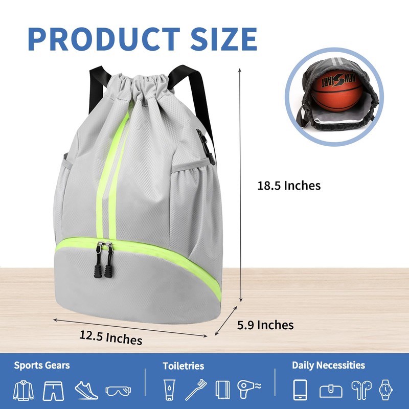 • Separate Shoe Compartment:This drawstring bag comes with a dedicated shoe compartment, a must-have feature for any sports enthusiast; It keeps your shoes and sports accessories separate from your other items, preventing them from getting dirty or damaged