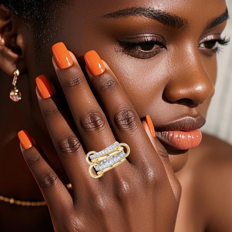 - TRENDY RING FOR WOMEN --- Our interlocked connected ring set consists of two silver cubic zirconia rings and two gold ring connected by small gold rings. with shiny cubic zirconia. This gold silver chunky stackable ring are perfect for adding a touch of trendy to your birthday celebrations, christmas, anniversaries, graduations, and a variety of other occasions.