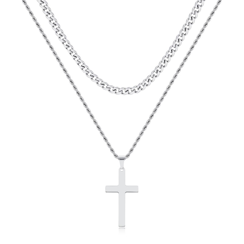 - "Cross Pendant Style":2pcs layered cross chain necklace combined with Cuban Link and Rope Chain with Cross Pendant.Our original men's Cross Necklace is timeless and will forever be in style. This stainless steel cross pendant is the perfect necklace for the man (or woman) of faith