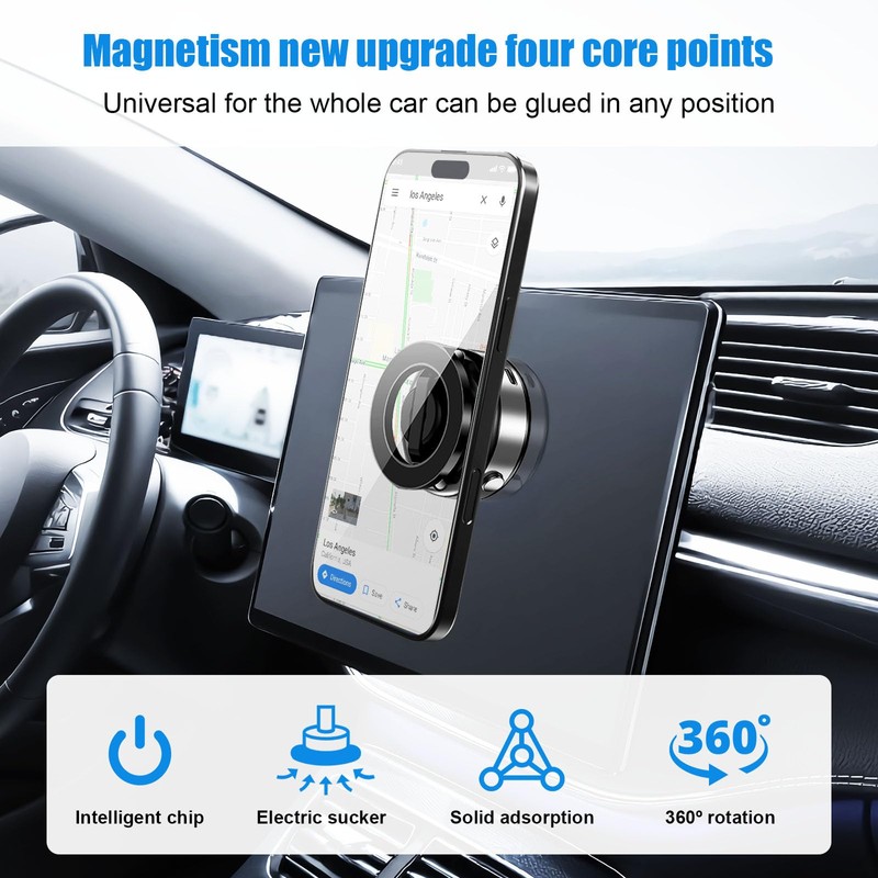 - 【Powerful Vacuum Adsorption Magnetic Phone Holder】: Equipped with a powerful suction magnetic system, this car phone mount ensures your phone stays securely in place even during sudden stops or bumpy rides. Drive with confidence, knowing your device is safe and sound.