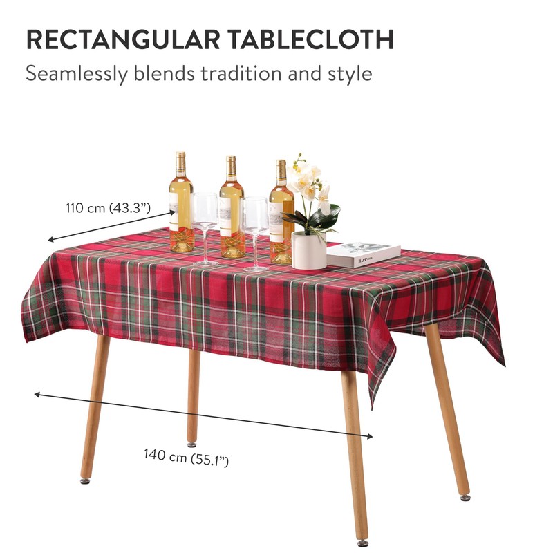 - Product details: 1 x tablecloth, dimensions: 110 x 140 cm, material: 100 % polyester, design: tartan pattern (red/green/white chequered)