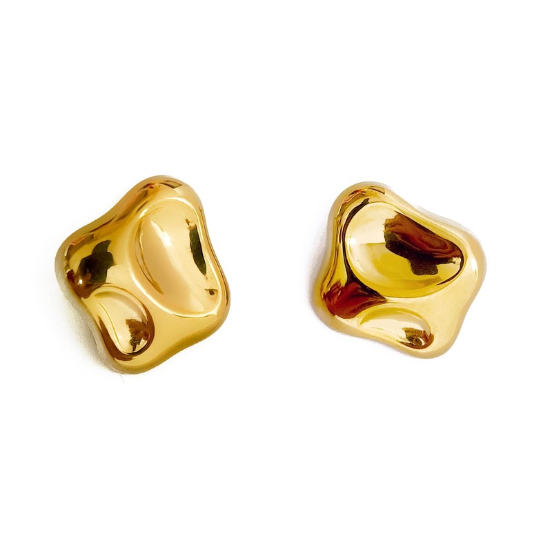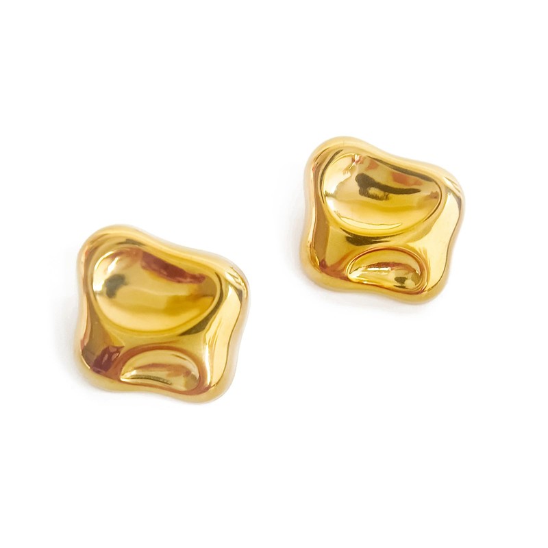Jemjosh 14K gold plated chunky alloy stud earrings for women big square trendy statement earring for jewelry gifts