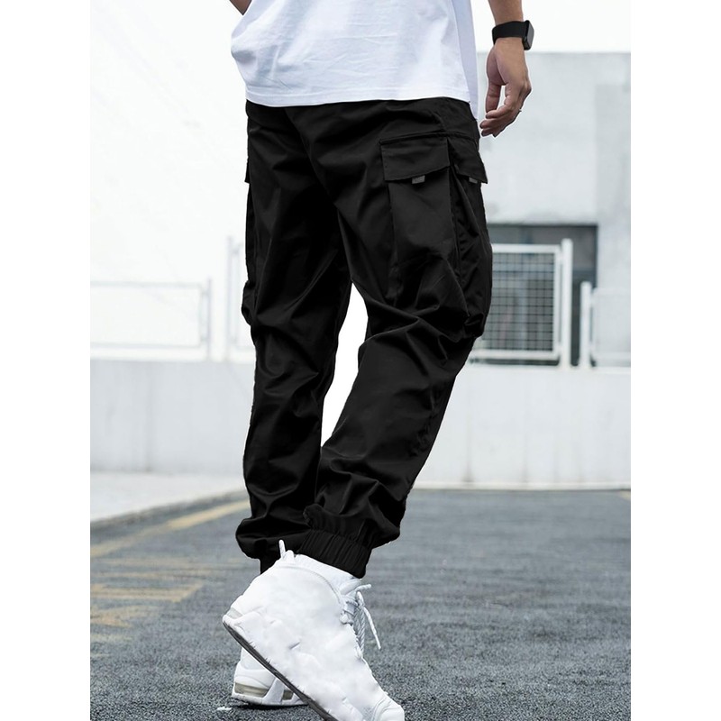 JEMLDL Mens Cargo Joggers Pants Elastic Waist Drawstring With Flap Pockets Techwear Pants for Men