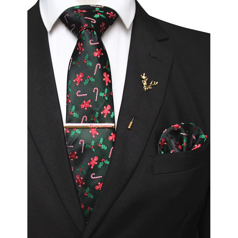 Jemygins Men's Christmas Tie Pattern Woven Party Tie & Hanky Set - m