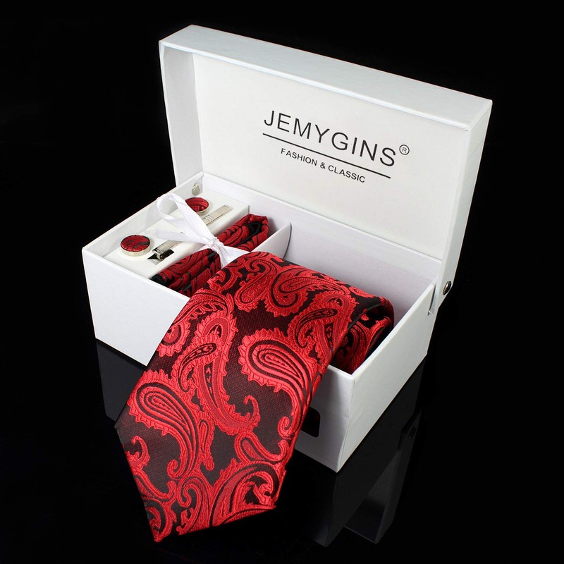 JEMYGINS Men's Necktie, Paisley Pattern, Pin, Cuffs, Button, Chief, Business, Job Hunting, Weddings, School Entrance Ceremonies, Graduations, After-parties, Funerals, Parties, Father's Day, Present,