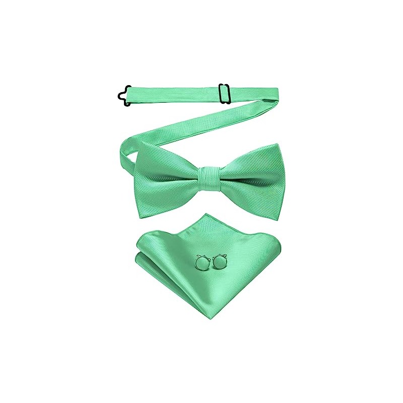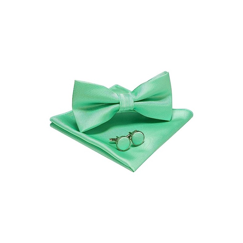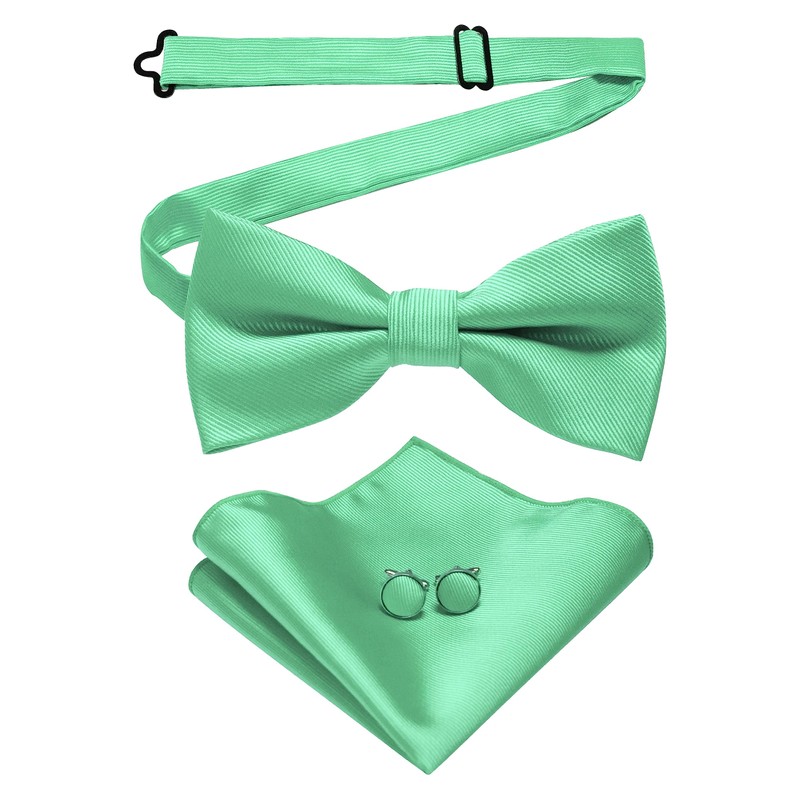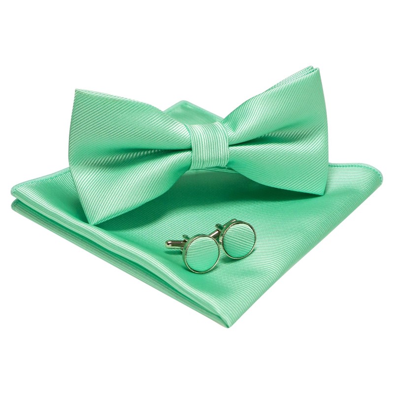 JEMYGINS Men's Plain Bow Tie and Pocket Square with Cufflinks, mint green 2