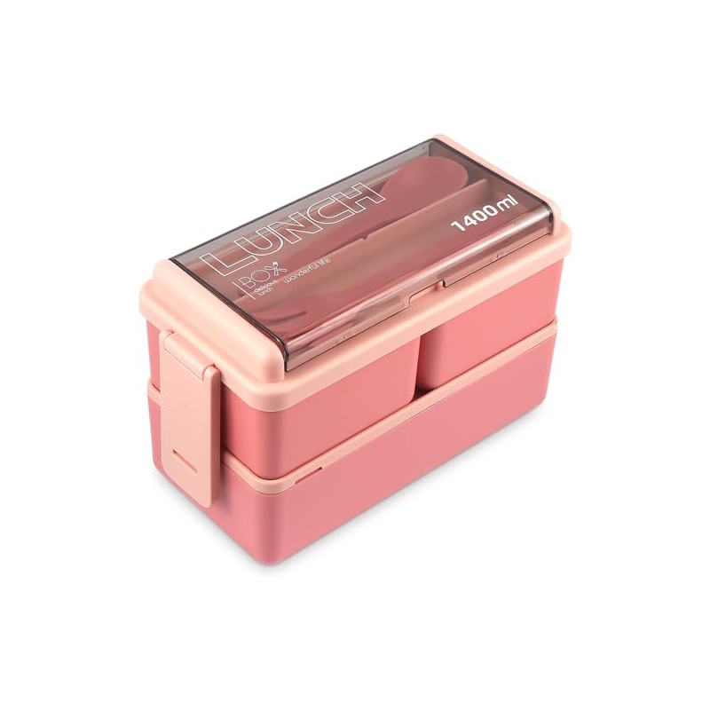 JENAGREEN Bento Box Adult Lunch Box, Lunch Containers with Removable Compartments, 2 Layers Stackable Bento Lunch pink