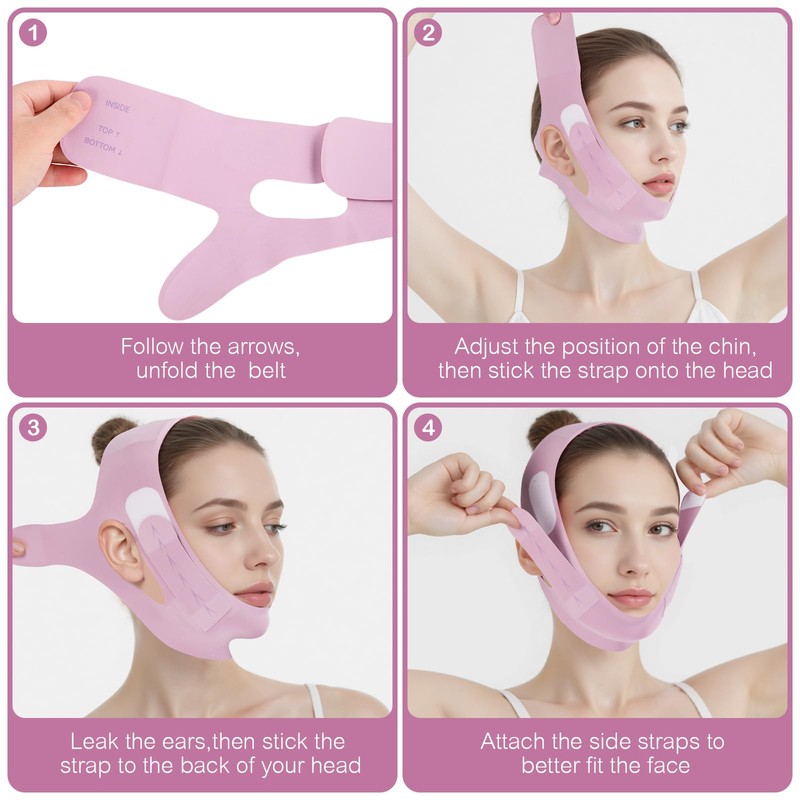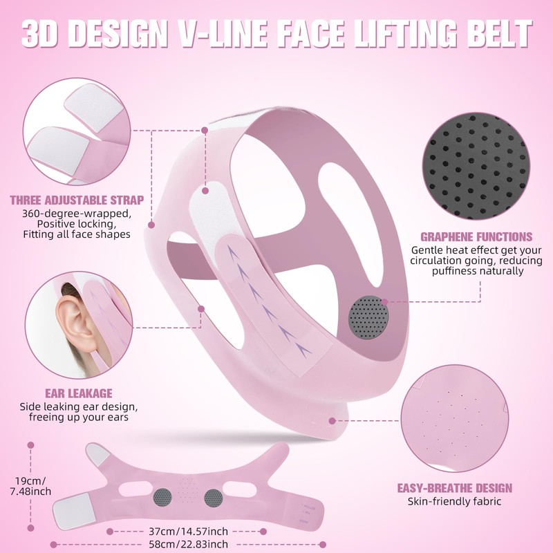 - 【More Thoughtful Design】Our double chin reducer is lined with graphene material, which promotes blood circulation around the double chin through a gentle thermal effect, naturally reducing puffiness and achieving a face lift. Furthermore,the jawline shaper includes three adjustable lifting straps for a customized fit: Top & back head straps with extra-wide hook-and-loop closures for 360° secure support; Side tension straps that adapt to any face shape, providing targeted lifting with comfortable precision.