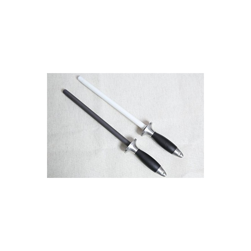 Jende Ceramic knife Honing Shatterproof Rod Steel 2 Piece Set-with an anti-break tip & stainless steel handle