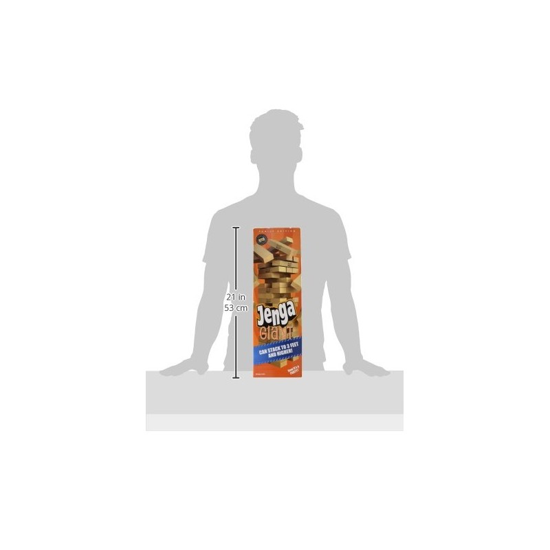 - This Jenga GIANT Family game starts at 18 inches high at setup and can safely stack to over 3 feet high in play!