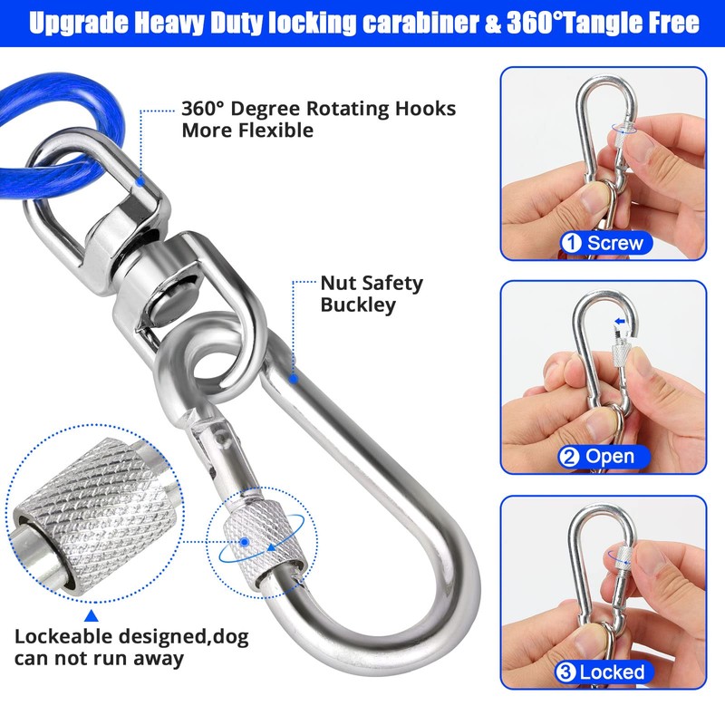- 🐶Ease To Use:The clip with safety lock makes the dog cord for yard has various methods of use, tie to a tree or stake, or tie the dog chain leash to your waist for walking and playing with your dogs.Worry-Free Quality Assurance: If you encounter any quality problems, please feel free to contact us, we will do our best to eliminate the trouble for you