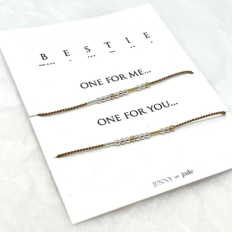 JENNYandJUDE Bestie Morse Code Bracelet Set – 14k Gold Fill Sterling Silver – Secret Message Friendship Bracelets – Minimalist Matching – Gift for Her