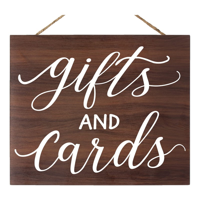 JennyGems Gifts and Cards Sign, Wedding Signs, Wedding Decor, Party Signs, 12x10 in Hanging Wall, Birthday, Engagement, Bridal Shower Party Decor (Brown)
