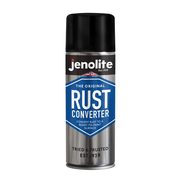 JENOLITE Rust Converter Spray for Metal 400 ml (13.52 fl oz). All In One Fast‑Acting Epoxy, Rust Reformer, Primer & Inhibitor. Converts Rust to a Paint‑Ready Surface. Made in Britain