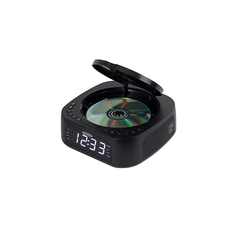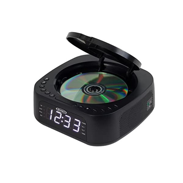 JENSEN JCR-375 Stereo Digital Dual-Alarm Clock with Top-Loading CD Player, FM Tuner, USB Charging Port, and Battery Backup