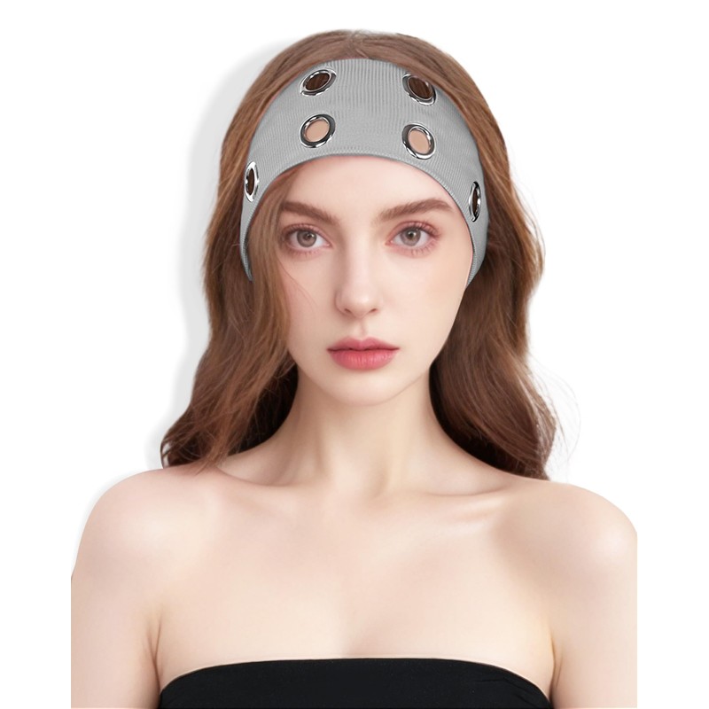 JENSVOIR Grommet Headband for Women, Grey 23cm Hollow Out Elastic Hair Band, Eyelets Punk Grunge Stylish Hairband