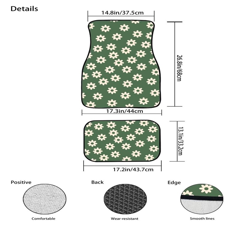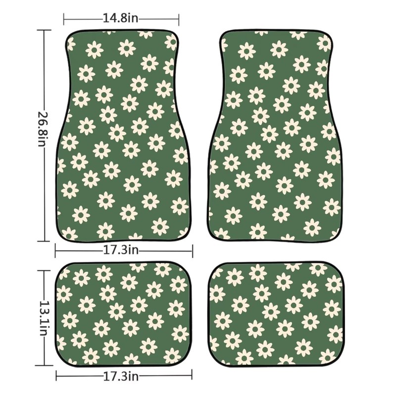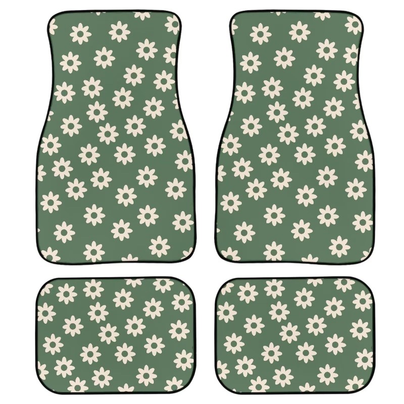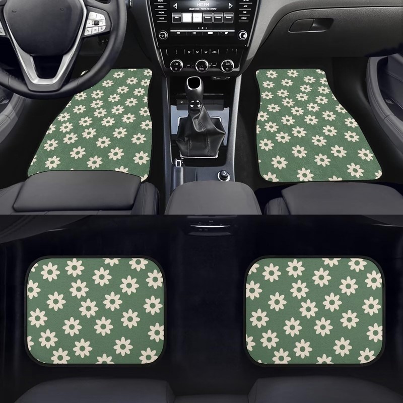 JEOCODY JEOCODY Sage Green Hippie Daisy Car Floor Mats Carpet Soft Rubber Car...