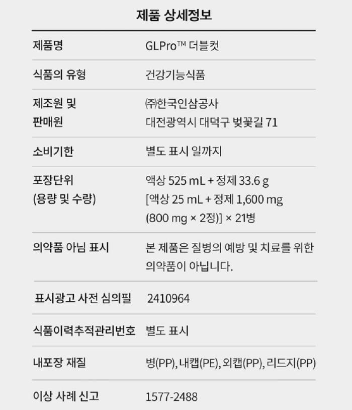 정관장 GLPro 지엘프로 더블컷 (액상 25ml + 정제 800mg x 2정) x 21개입 x 1박스 WB