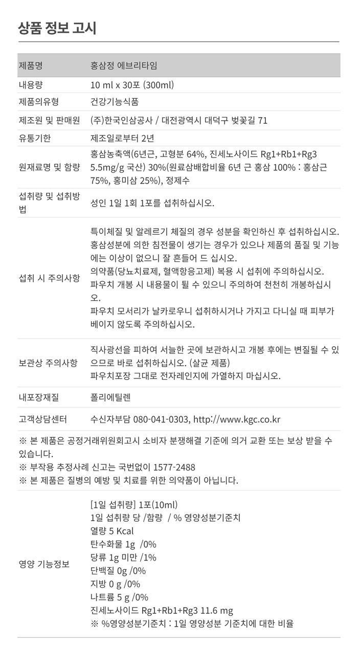 정관장 홍삼정 에브리타임 오리지널 10ml x 30포 iuy