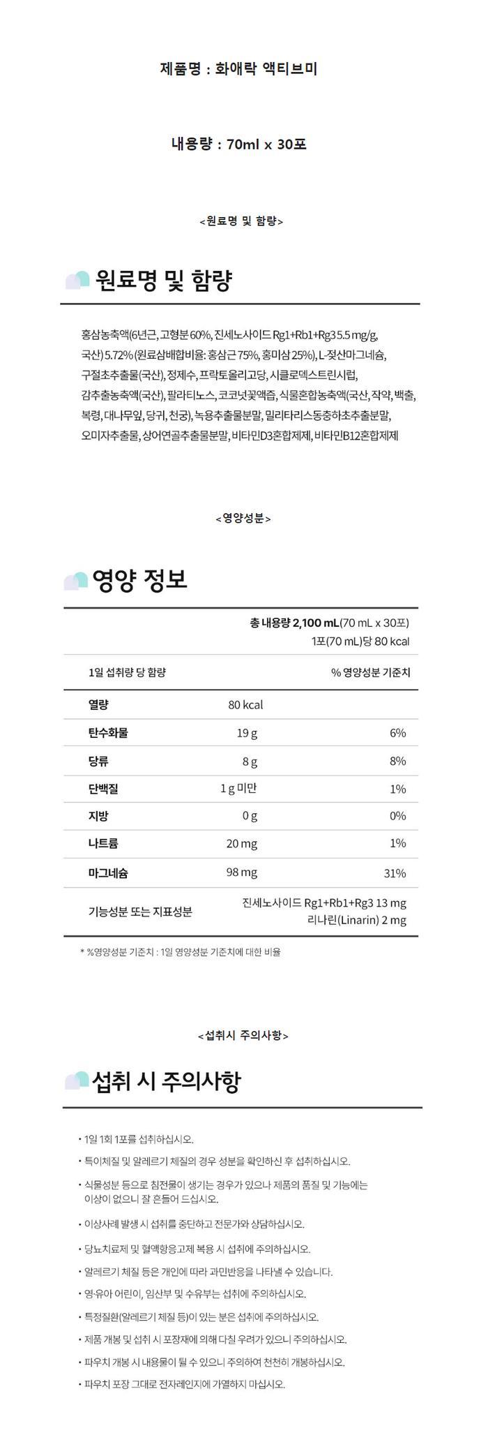 Jeonggwanjang Hwaaerak Active Me 70ml x 30 packs_SH / 정관장 화애락 액티브미 70ml x 30포SH