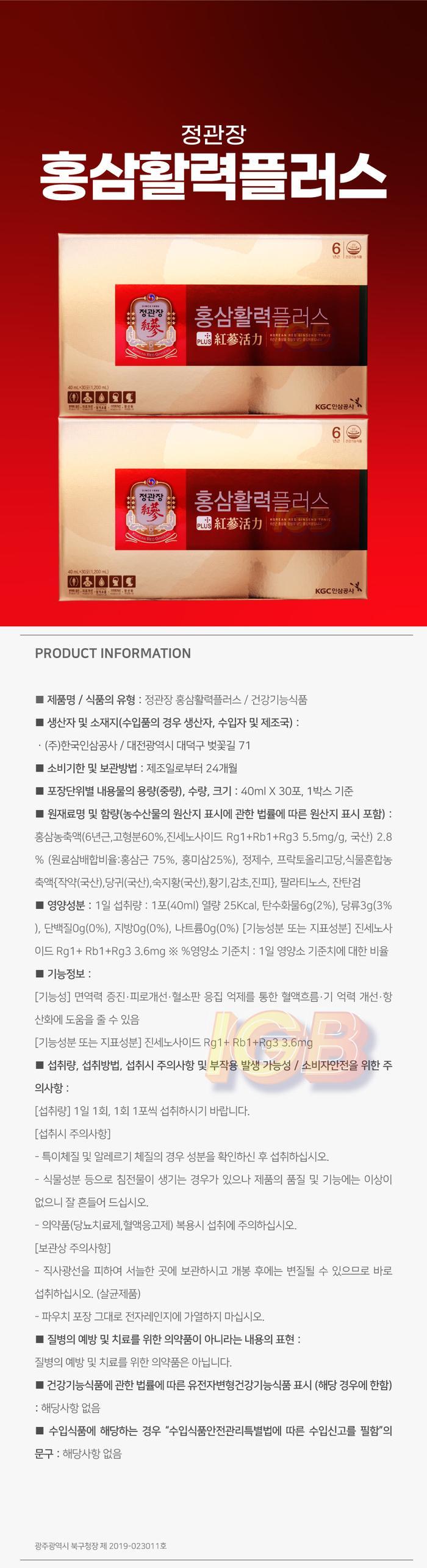 Jeonggwanjang Korea Ginseng Corporation Jeonggwanjang Red Ginseng Vitality Plus 40mlx30ea (2 boxes)