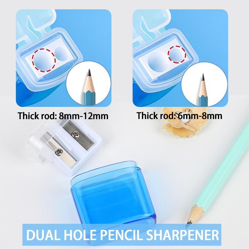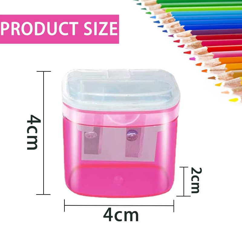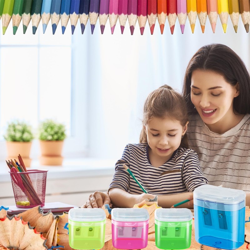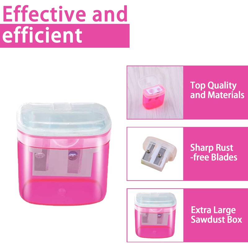 - 🌟【Selling Points】 Dual Holes Design: Features both standard and small holes for sharpening a variety of pencil sizes. Convenient Lid: A built-in lid helps prevent pencil shavings from spilling out and keeps the sharpener clean. Assorted Colors: The vibrant color set adds a fun element to stationery and allows for easy identification of personal belongings. Easy to Use: Simple and intuitive operation for quick and effective sharpening.