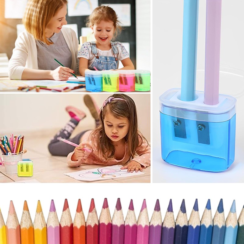 - ✏️【Quantity & Color】 Our pack includes 12 dual hole pencil sharpeners, with an assortment of colors to brighten up any workspace: 3 in yellow, 3 in blue, 3 in pink, and 3 in green. This variety ensures you have a sharpener for every student or a pop of color for every pencil case.
