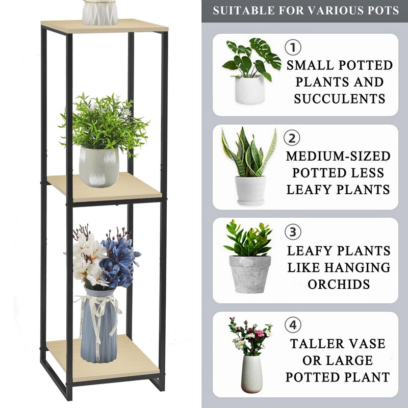 - 【Sturdy Structure】:This tall plant stand consists of heavy-duty rustproof metal tube, thickened top and bottom MDF, and 4 anti-floor scratching mats. The metal frame makes it more stable and maintenance-free; The flat shelf not only makes the flower rack more beautiful and consistent with the home decoration but also makes your plants or other decorations more stable