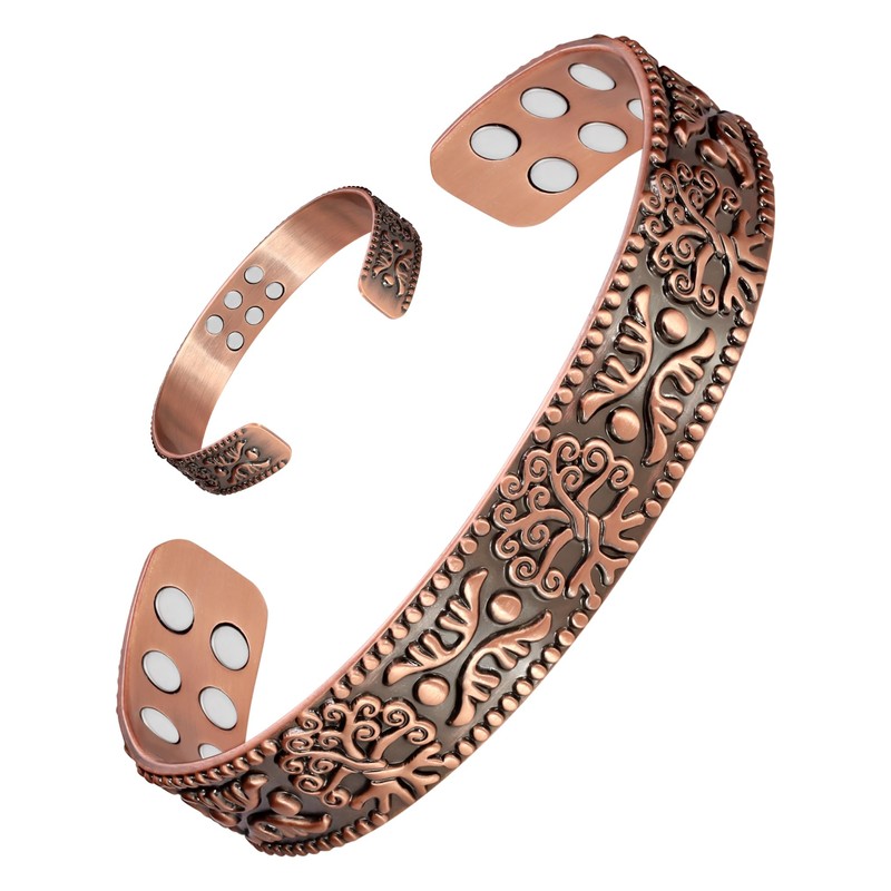 Jeracol Coppr Bracelet for men,99% Solid Pure Copper Magnetic Bracelet with 18Pcs Ultra Strength Magnets,Adjustable Bangle with Gift Box(TREE)