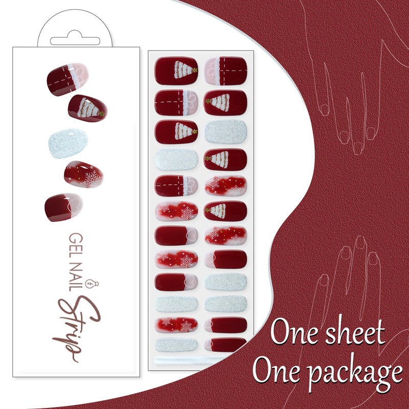 - Package Contents - You will receive 1 sheet Christmas semi cured gel nail strips. It comes in 8 sizes, 24 pieces in total, which can meet the manicure needs of nails of different sizes. Also comes with 1pc nail file, 1pc wooden cuticle stick and 1pc prep pad.