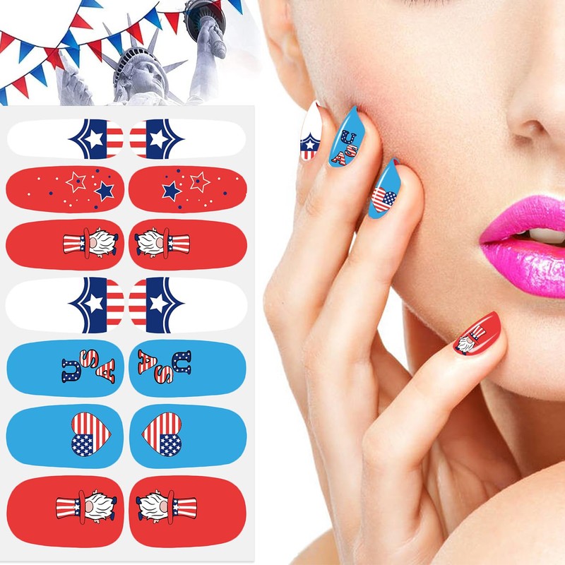 - Easy to Use:These colorful Independence Day nail wraps are self-adhesive and easy to use, just choose the patterns you like and paste them on your nails, then apply a layer of nail polish to fix them, you can also match them with a colored base coat or combine different patterns together.