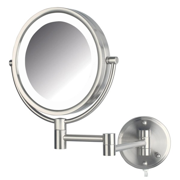 JERDON Wall-Mounted Vanity Mirror with Lights - Lighted Makeup Mirror with 8X Magnification & Nickel Finish - Plug in Model HL88NL